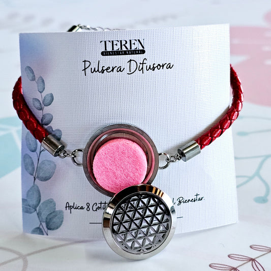 Pulsera cuero Roja Difusor de Aceites Esenciales